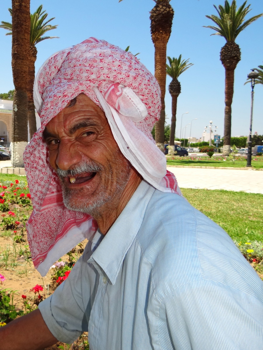 We both love taking photos. Those are some of the people we have met in our last week in Djerba. This man had a limp, and a million dollar smile.